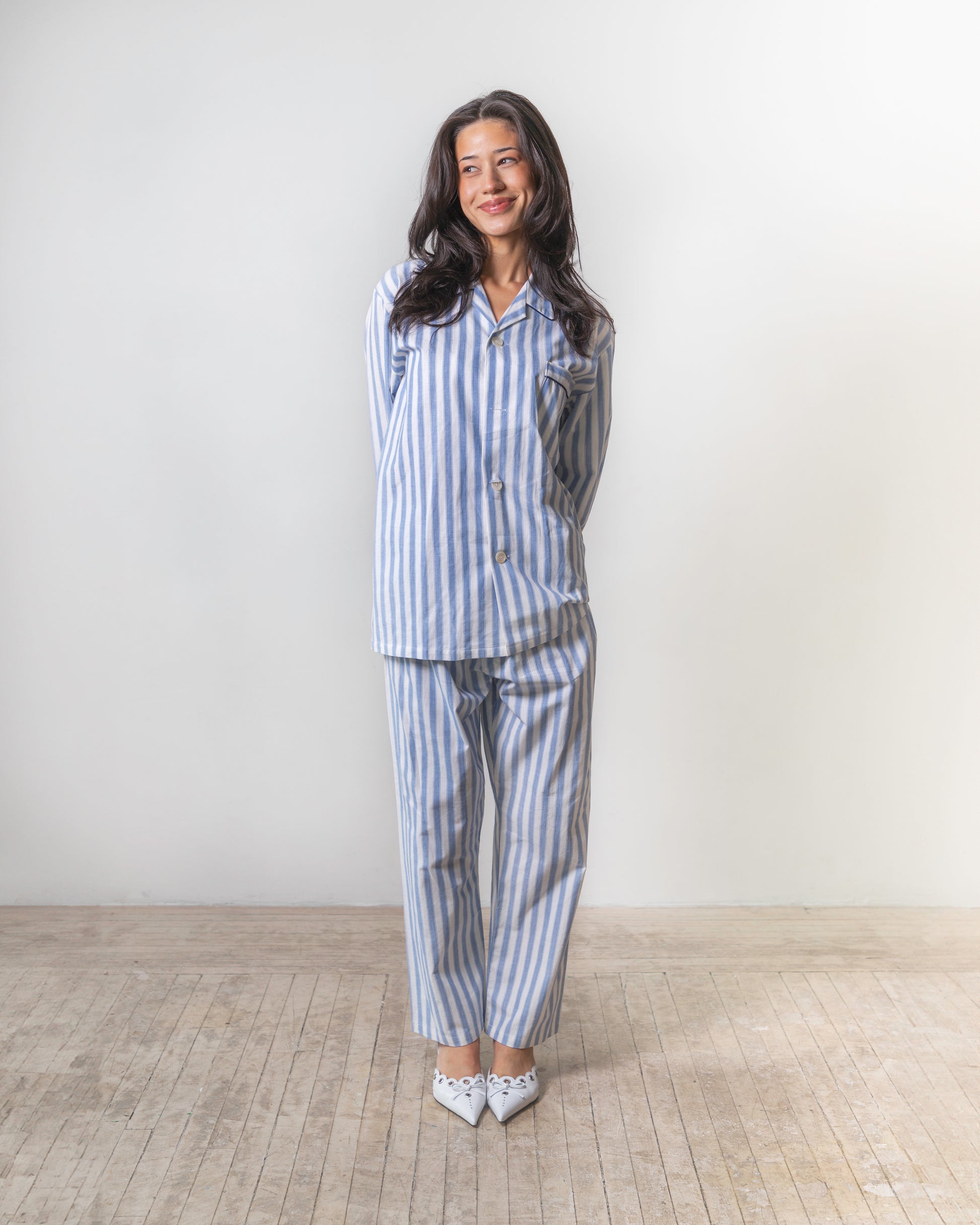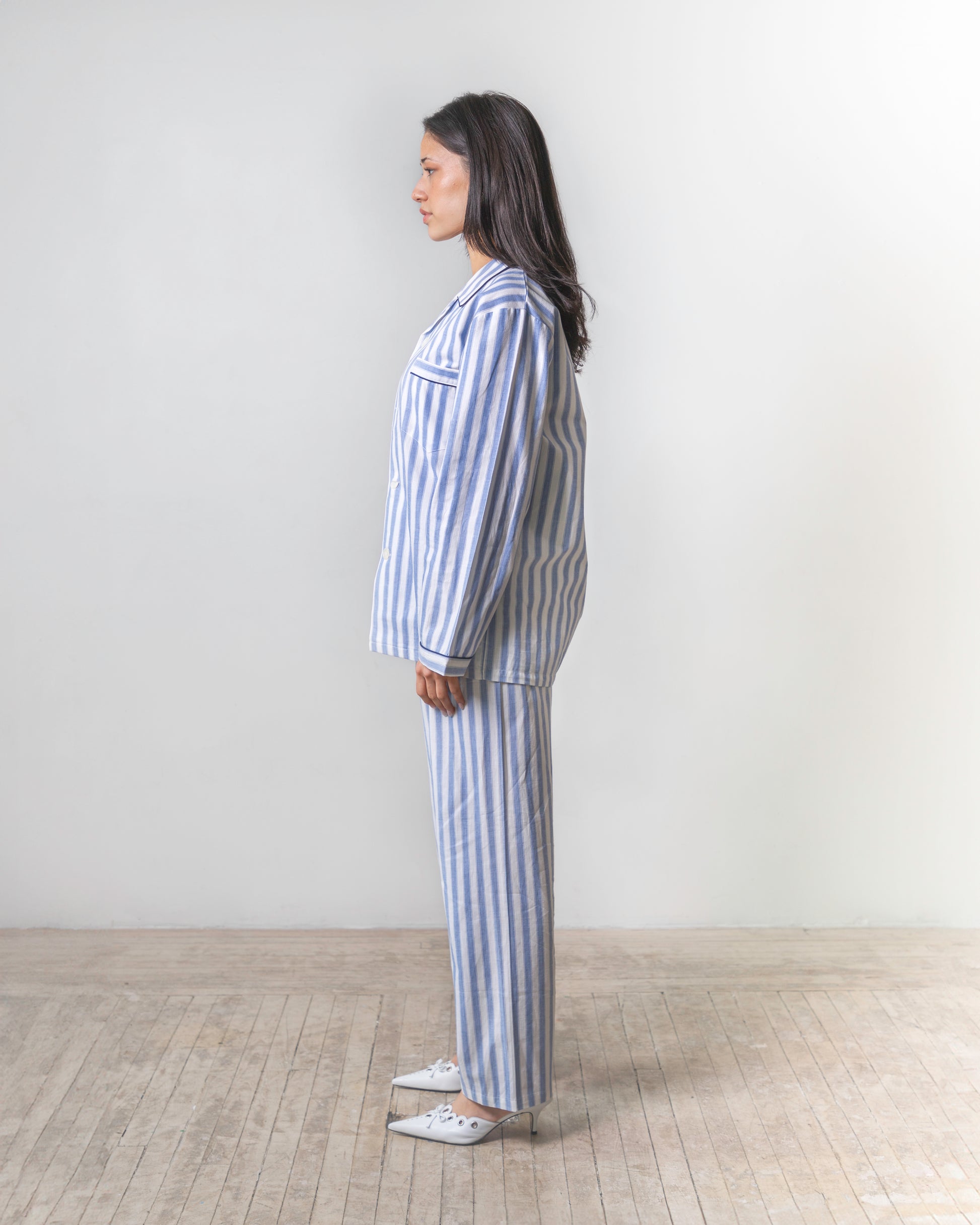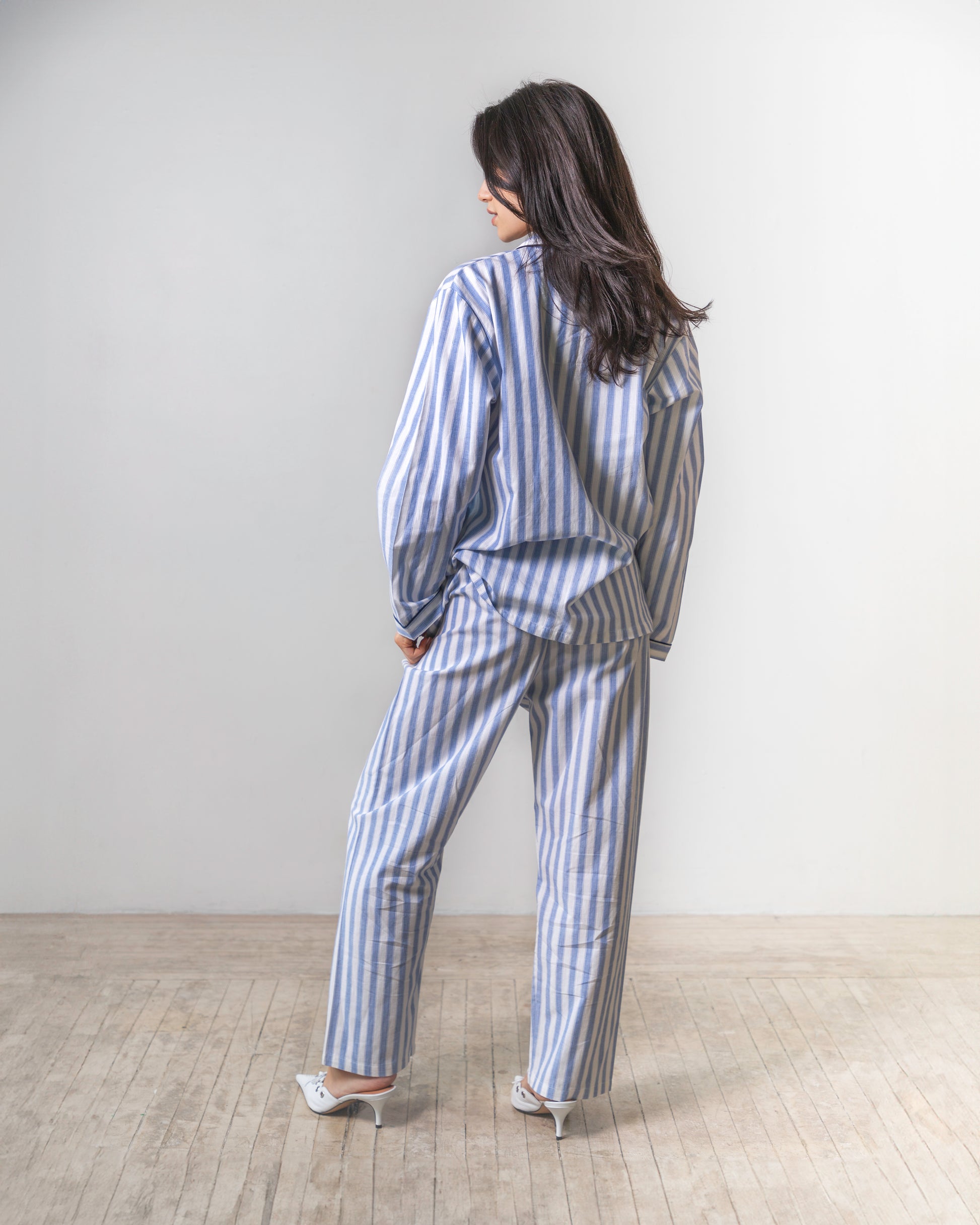 Blue and white striped two-piece set